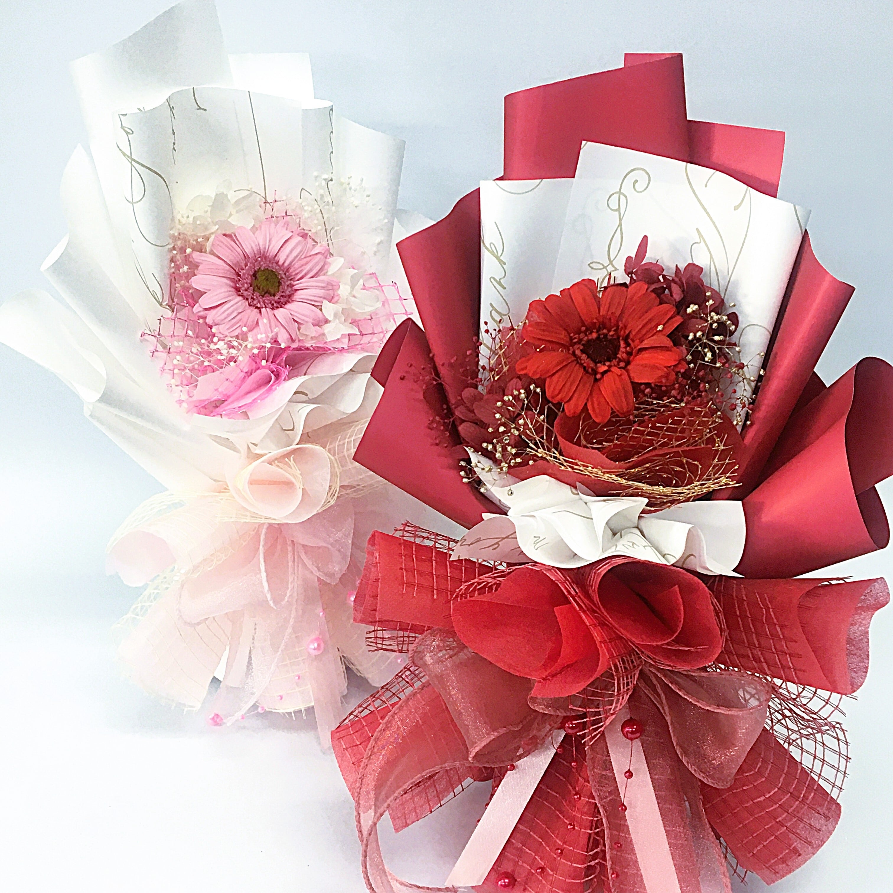 ・鮮やかな赤のラッピングが、受け取られた方の目と心を惹きつけます。