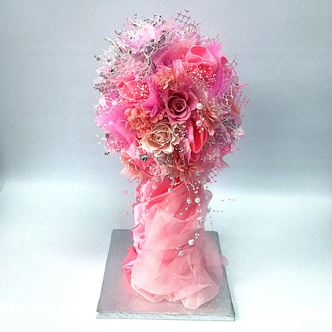 トロフィー型アレンジメント(ライトピンク)A-030は、可愛らしさ溢れるデザインとキラキラとしたパールの輝きが特徴の特別なフラワーギフトです。柔らかなライトピンクに彩られたこのアレンジメントは、見る人の心を惹きつけ、華やかな空間を演出します。お部屋のインテリアや友人、大切な方への贈り物にもぴったりです。