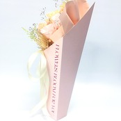 BOXアレンジメント(ライトオレンジ)X-016は、優しいライトオレンジの花々が美しく配置されたアレンジメントです。おしゃれなBOXに入ったこのアレンジメントには、可愛いリボンも飾られ、見た目もとても愛らしく、気軽に贈れるプレゼントとして最適です。お部屋にもさりげなく馴染むデザインで、インテリアとしても楽しめます。