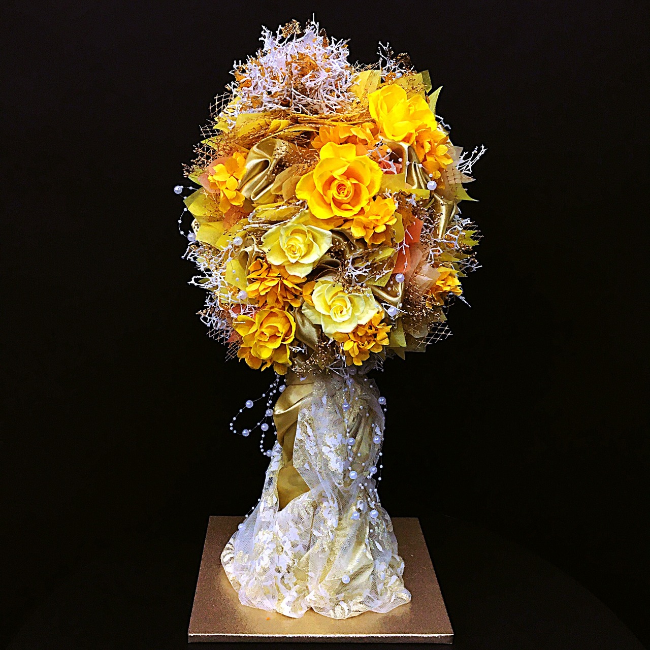 トロフィー型アレンジメント(イエロー × ゴールド)A-048